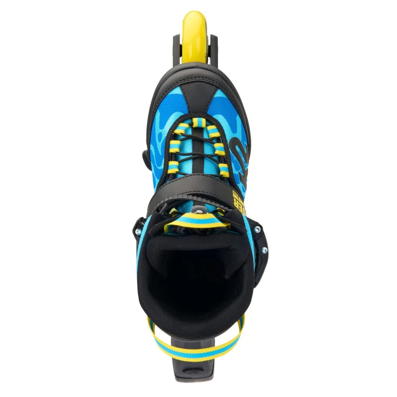Das Schnellschnürsystem ist schnell und einfach zu bedienen. Die Größenverstellung per Knopfdruck ist in sekundenschnelle erledigt. Der Skate wächst so um bis zu 5 Größen mit. Die lästige Suche nach der richtigen Größe entfällt somit gänzlich. Die Bremse ist bereits montiert. Der Skate ist also sofort einsatzbereit und Ready to Ride!