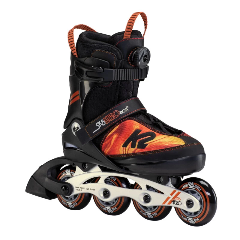 Der SK8 Hero BOA Alu ist das Premiummodell der Kinderskates von K2. Der bequeme Oberschuh bietet Stabilität und Komfort. Hierzu trägt nicht zuletzt der einfach zu bedienende BOA Drehverschluß bei. Der Oberschuh ist mittels Knopfdruck um fünf Größen verstellbar und wächst so mit den Kinderfüßen mit.
