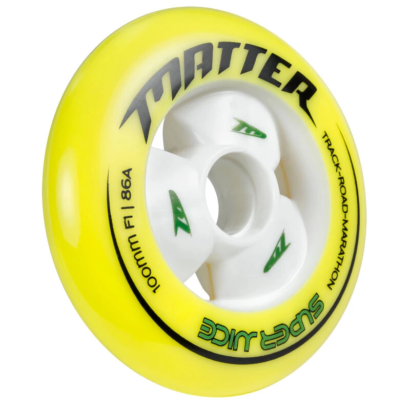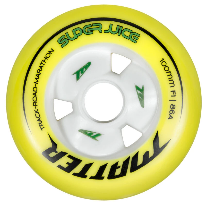 Die Super Juice ist seit Jahren fester Bestandteil der Speedskating Szene und der Grundstein des Erfolgs vom Hersteller Matter. Geeignet für alle Straßenbeläge ist die Super Juice vor allem bei Marathon-Speedskatern beliebt. Die schnelle, griffige und haltbare Mischung der Rolle ist aber auch in der Halle und für die Bahnnutzung geeignet.