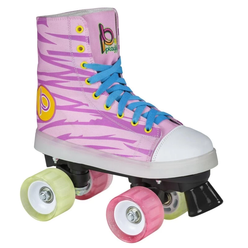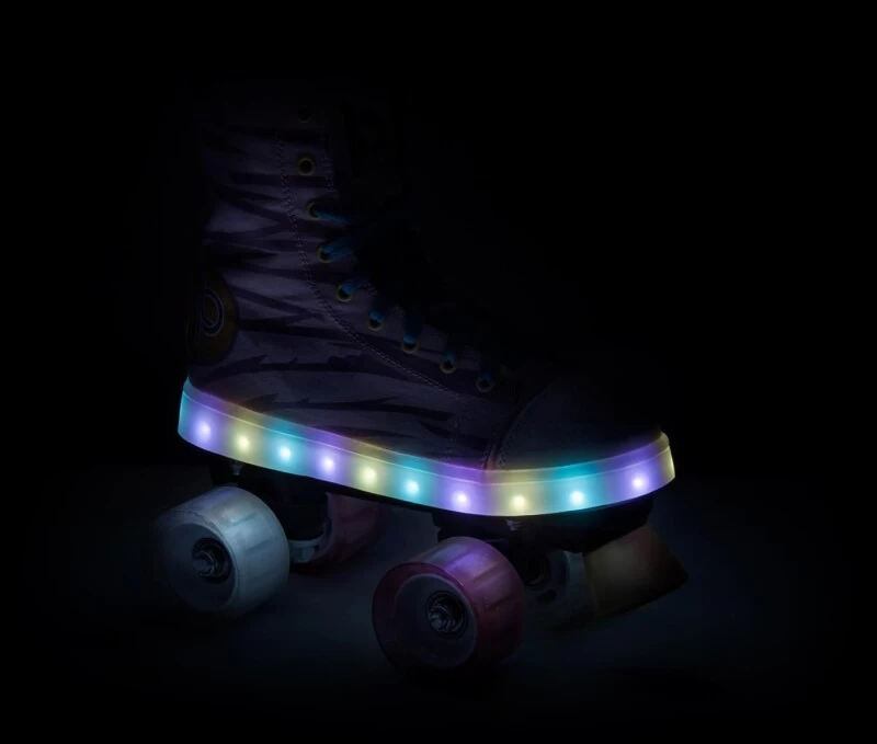 Wodurch sich die Playlife Lunatic LED Rollschuhe für Kinder von anderen Rollschuhen unterscheiden? Vor allem durch die beleuchtete Sohle mit mehr als 20 bunten LEDs, die den sowieso schon auffälligen Schuh zum absoluten Highlight machen. Aber auch ohne eingeschaltete Lichtsohle sieht der Rollschuh richtig gut aus und verspricht Fahrspaß ohne Ende!