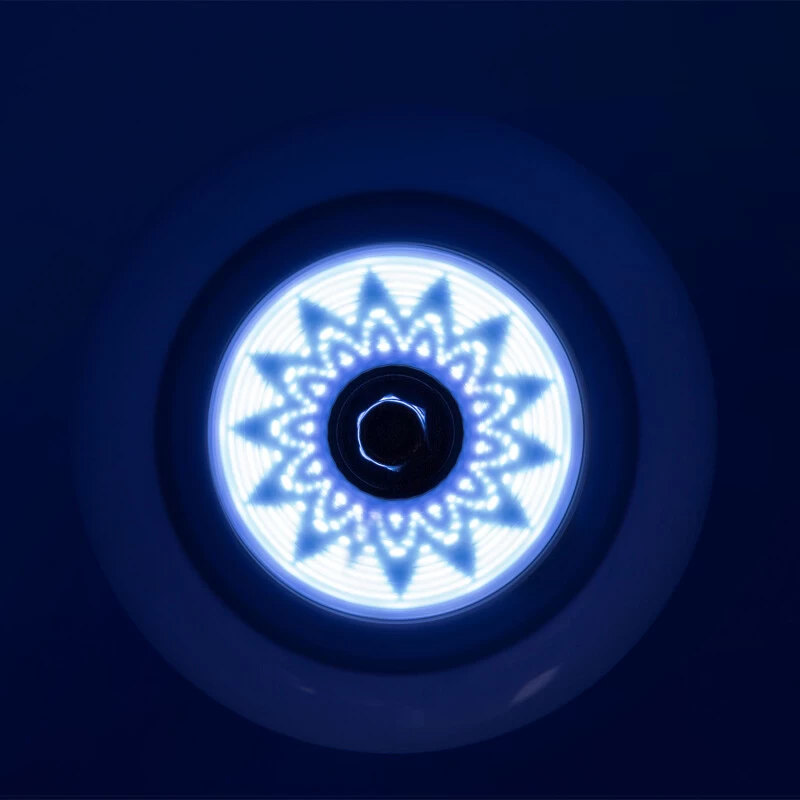 In der Rolle steckt ein herausnehmbarer, wiederaufladbarer LED-Einsatz, der bei Bewegung geometrischen Figuren, Namen oder Slogans erzeugt. Das LED-Licht kann über einen Mini-USB Anschluss wieder und wieder aufgeladen und später wieder in die Rolle eingesetzt werden. Neben den nie dagewesenen Effekten hat die Rolle einen weiteren Vorteil: Da die Lämpchen nun über eine Batterie versorgt werden, kann auf den schwergängigen „Dynamo“ (Magnet) in den bisherigen Leuchtrollen verzichtet werden. Die Fothon Grapix Wheels haben also die gleichen Laufeigenschaften wie gute Fitness-Speedrolle – und auf Wunsch schaltest du die LED´s ein und bist der Hingucker – garantiert!