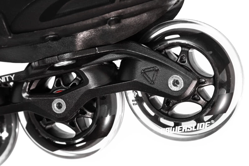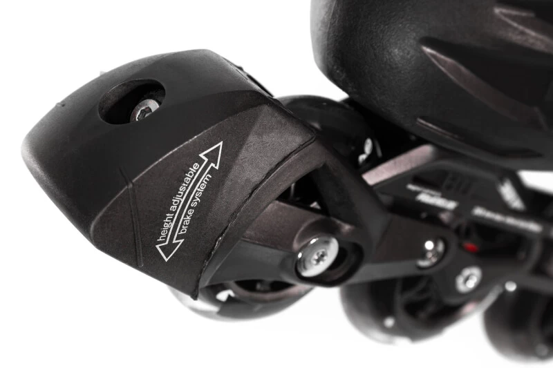 Der Powerslide Argon 80 Black bietet neben dem zeitlosen Oberschuh mit verstärkter Schale die leichtgängigen Powerslide Infinity Rollen samt WCD Abec 7 Kugellagern. An der Aluminiumschiene ist serienmäßig eine höhenverstellbare Bremse montiert, die jederzeit mit wenigen Handgriffen abgenommen werden kann.
