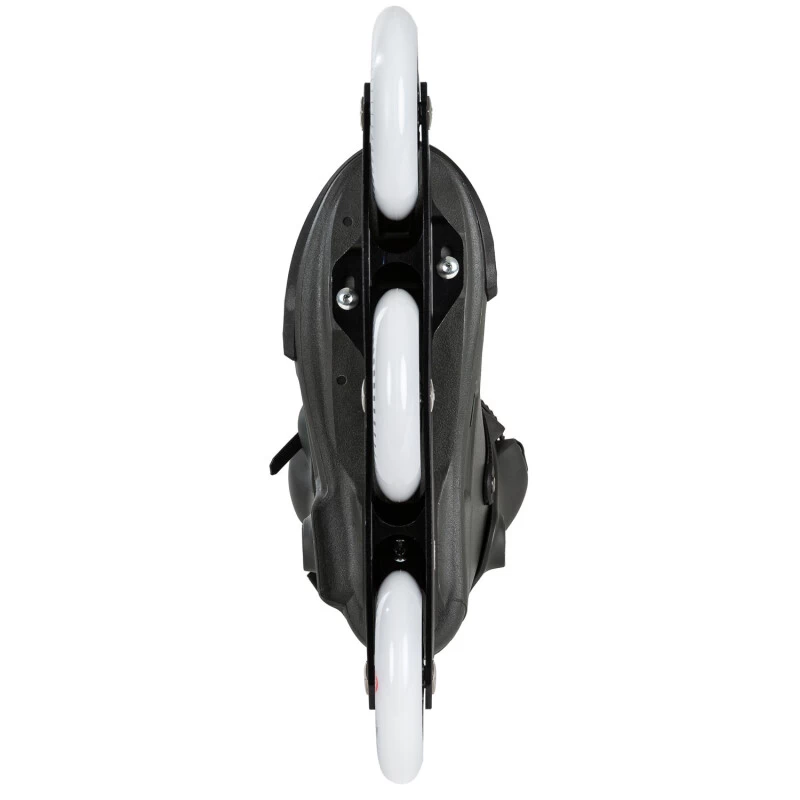 Herzstück des Powerslide Next Charcoal ist aber die Schiene. Die Combar Rocker Frame mit Trinity Mounting ist aus haltbarem und leichten 6061 Aircraft Aluminium gefräst und bietet auf 260mm (10,2″ Länge) 3x110mm Rollen Platz. Die Besonderheit ist die HXG Rocker Technology: Sechseckige Aluminiumeinsätze in der Schiene ermöglichen ein individuelles Einstellen der Rollenhöhe – auf allen Positionen. So lassen sich alle Varianten an Rocker Setups fahren, ebenso verschiedene Flat-Setups. Geliefert wird der Skate mit Powerslide Spinner Wheels und Wicked Abec 9 Bearings.