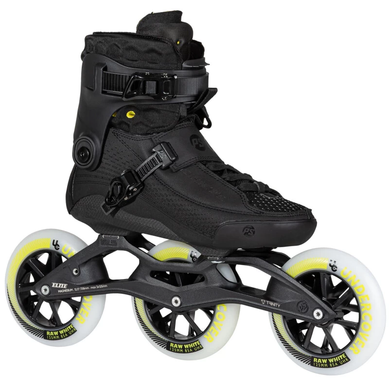 Die 12,5″ lange Powerslide Elite Magnesium Schiene ist passend zum Oberschuh eine Mischung aus Race und Komfort. Die Bauweise (gegossenes Magnesium) macht sie nicht nur enorm leicht, sondern bietet auch etwas mehr Flex als gefräste Schienen. Mehr auf Performance als auch Komfort sind dann wieder die Rollen und Kugellager ausgelegt. Mit den Undercover Raw White Wheels in 125mm und den WCD Abec 9 Kugellagern geht es in jedem Tempo leichtgängig voran.