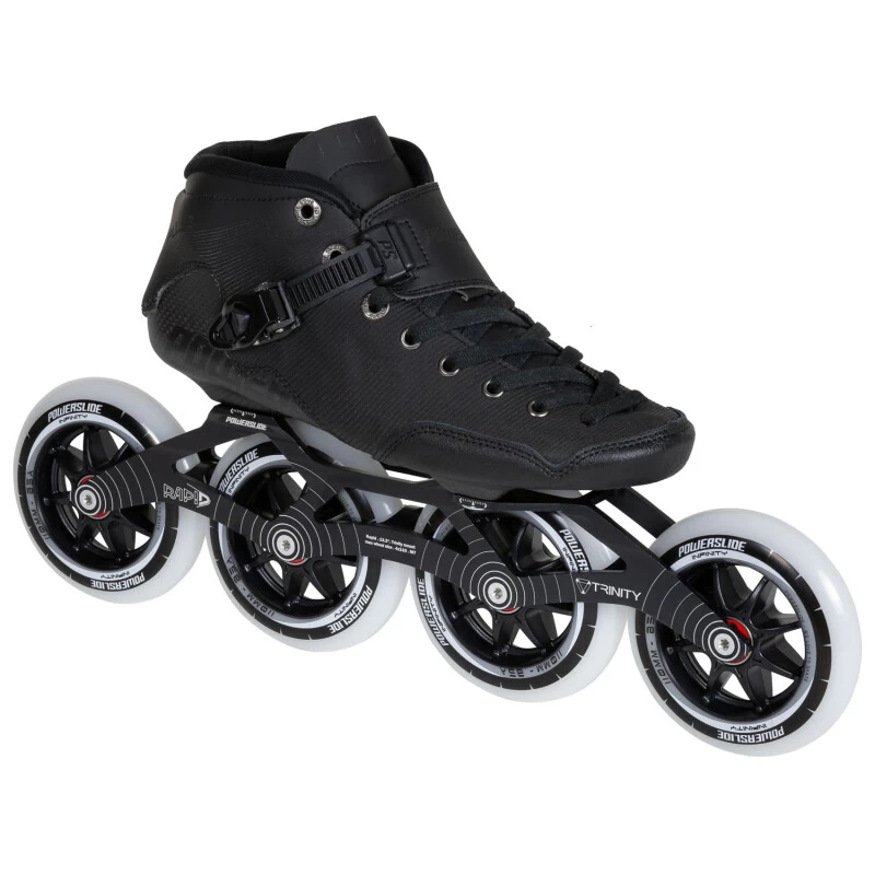 Auf Basis des neuen Puls bietet Powerslide auch eine klassische 4x110mm Variante an. Die Besonderheit bei diesem Skate ist die Trinity Verschraubung der neuen Rapid Schiene, wodurch die Standhöhe reduziert und die Stabilität verbessert wird.