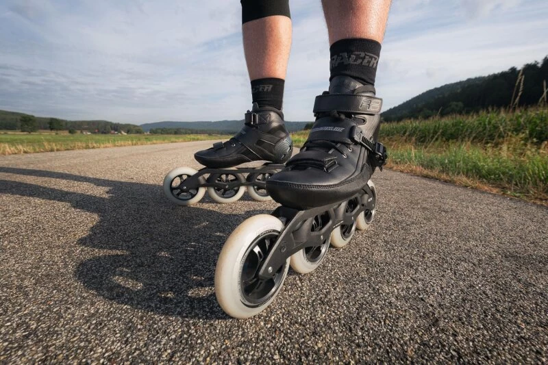 Der Powerslide R4 ist wahrscheinlich der beliebteste Speedskate für Einsteiger. Die Kombination aus echter Speedskateausstattung und etwas höherem Schaft macht ihn besondern für Skater interessant, die bisher einen normalen Inlineskate aus dem Fitnessbereich gefahren sind. Denn die geringe Schafthöhe von Speedskates erfordert mehr Stabilität im Sprungegelenk – und genau dafür hat der R4 den zusätzlichen Klettverschluß an der Schafterhöhung.