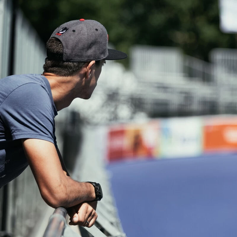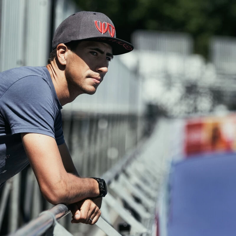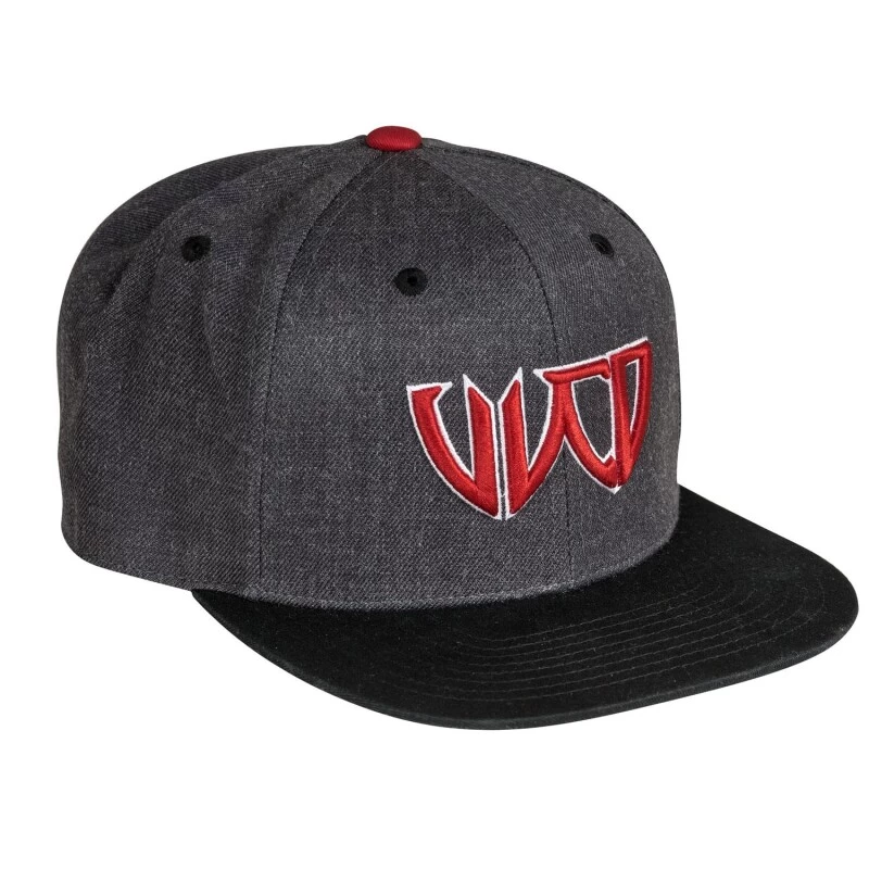 Die Wicked Cap aus 100% bester Baumwolle in modischem Grau/Schwarz mit rotem Logo-Patch erhältlich.