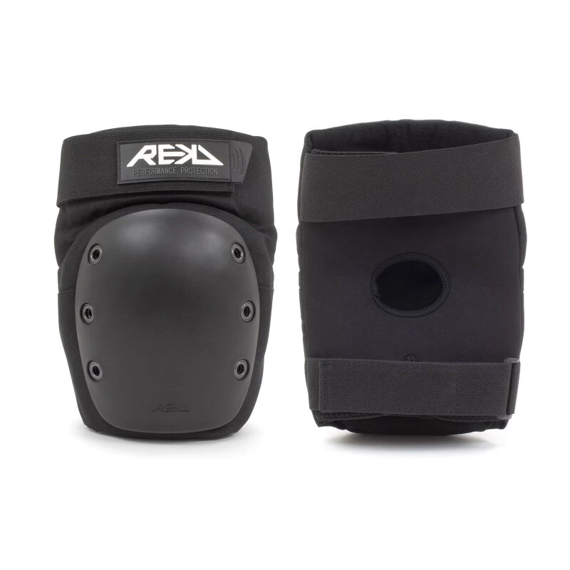 Die REKD Ramp Knieschützer sind traditinoelle Protektoren für den Skatepark. Die etwas dickere Polsterung und die großen Plastikkappen schützen die Knie auch bei Stürzen nach Sprüngen und in der Rampe. Zwei Klettverschlüsse sorgen für ordentlichen Halt und hohen Tragekomfort.