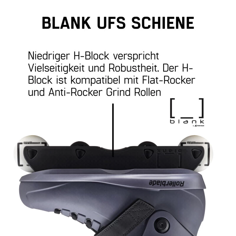 BLANK UFS SCHIENE mit integriertem H-Block verspricht Vielseitigkeit und Robustheit. Der H-Block ist kompatibel mit Flat-Rocker und Anti-Rocker Grind Rollen.