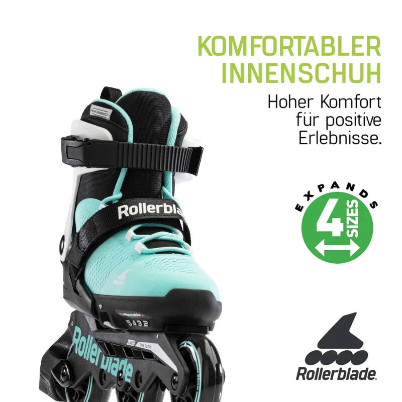 Dafür sorgen vor Allem drei hervorragend laufende Rollen, die relativ weich sind und damit den nötigen Grip für Anfänger geben. Für Sicherheit sorgt die montierte Bremse und der gut zu befestigende Schuh. Durch den integrierten Innenschuh, sitzt der Schuh besser und der Einstieg gelingt leichter.