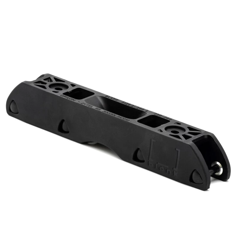 Getestet und entwickelt von den Blank Pro Street & Park Team Skatern. Diese UFS-Schiene passt auf jeden Street- oder Park-Skate mit UFS (Universal Frame System). Der neu konstruierte H-Block ist um 5 mm niedriger, um ein besseres Grinden mit flachem (alle 4 Rollen berühren alle 4 Rollen berühren den Untergrund) oder Anti-Rocker (zwei kleine Grind-Rollen in der 2. und 3. Position) Set-up zu garantieren.