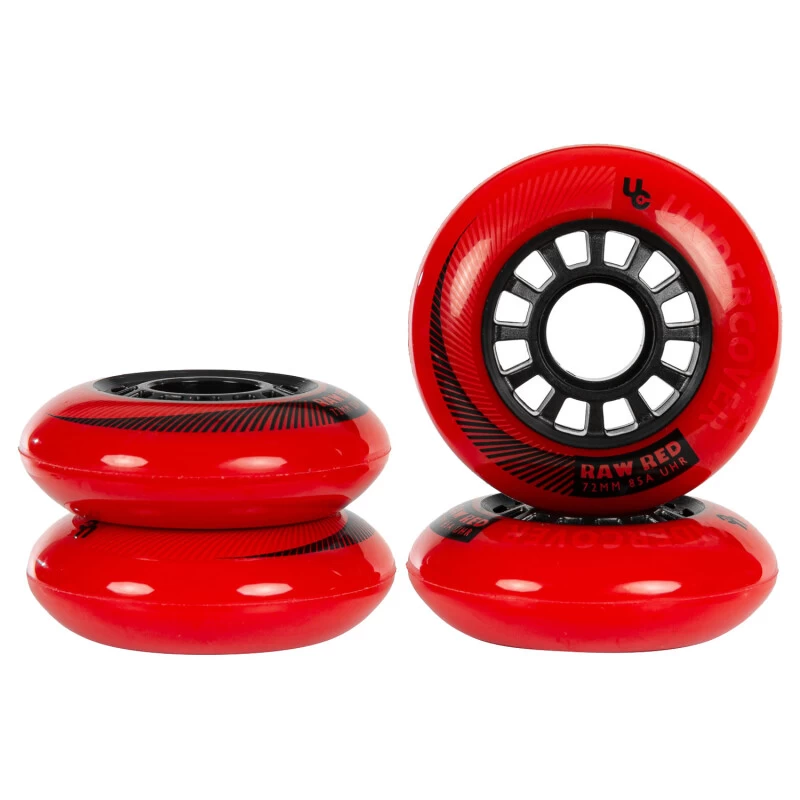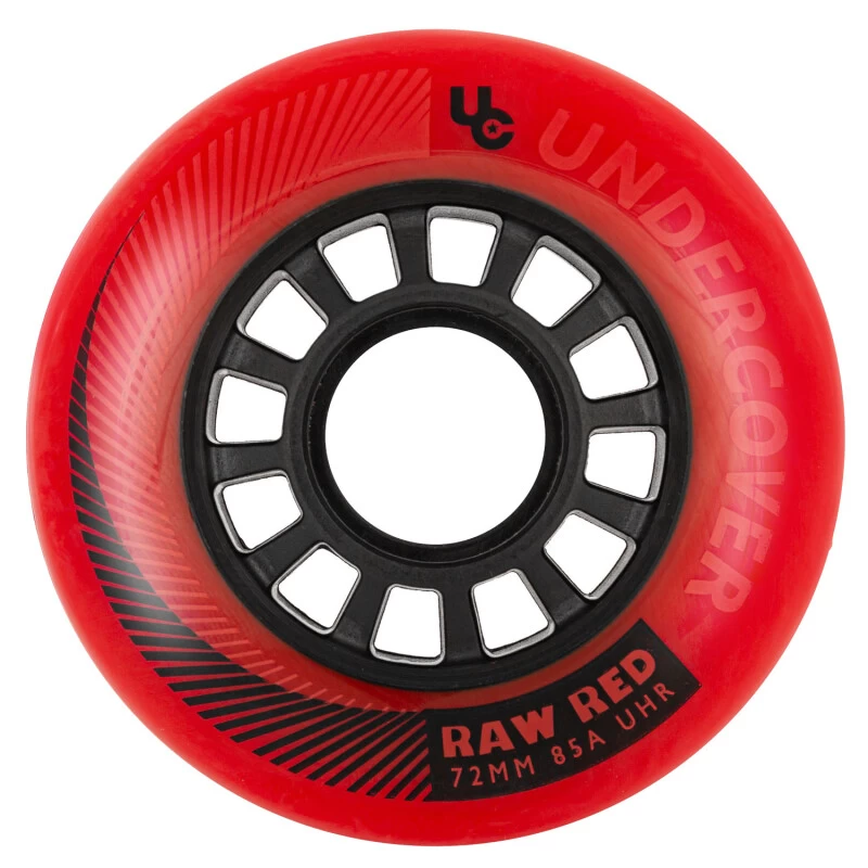 Die Raw Wheels von Undercover sind robuste und schnelle Alltagsrollen. Sie eignen sich ideal als Tuningrolle für Fitness- und Freizeitskates mit original 72mm Rollen, die in Zukunft aber leichtgängiger und schneller laufen sollen. Hier spielt das schnelle Ultra High Rebound (UHR) Polyurethane seine Stärken aus und überzeugt durch Grip und Speed. Aber nicht nur Freizeitskater:innen werden ihre Freude an der Rolle haben. Auch Urbanskater:innen werden mit der Raw Red in 72mm auf ihre Kosten kommen.