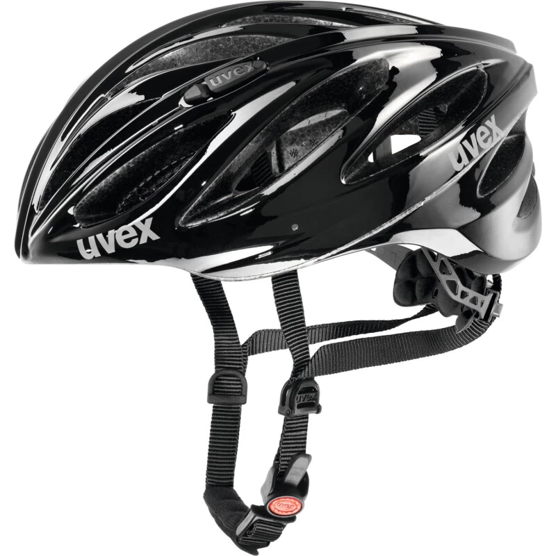 Sportlich orientierter Rennhelm von Uvex in coolem Schatten-Design. 19 Belüftungsöffnungen mit Fliegennetzeinsatz sorgen für einen kühlen Kopf. Mit doppelter In-Mold-Technologie (durch die feste Verbindung zwischen Innen- und Außenschale wird die Helmstruktur verstärkt) und Monomatic-Verschluss-System. Perfekter Sitz durch das höhen- und weitenverstellbare IAS-3D-Größenanpass-System. Reflektierender Aufkleber für mehr Sicherheit.